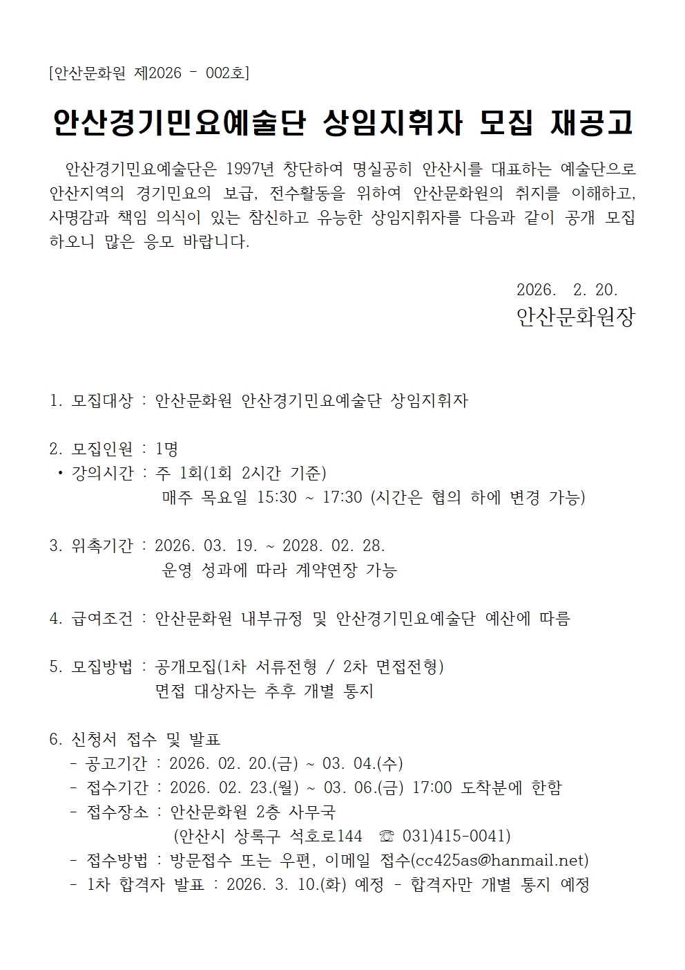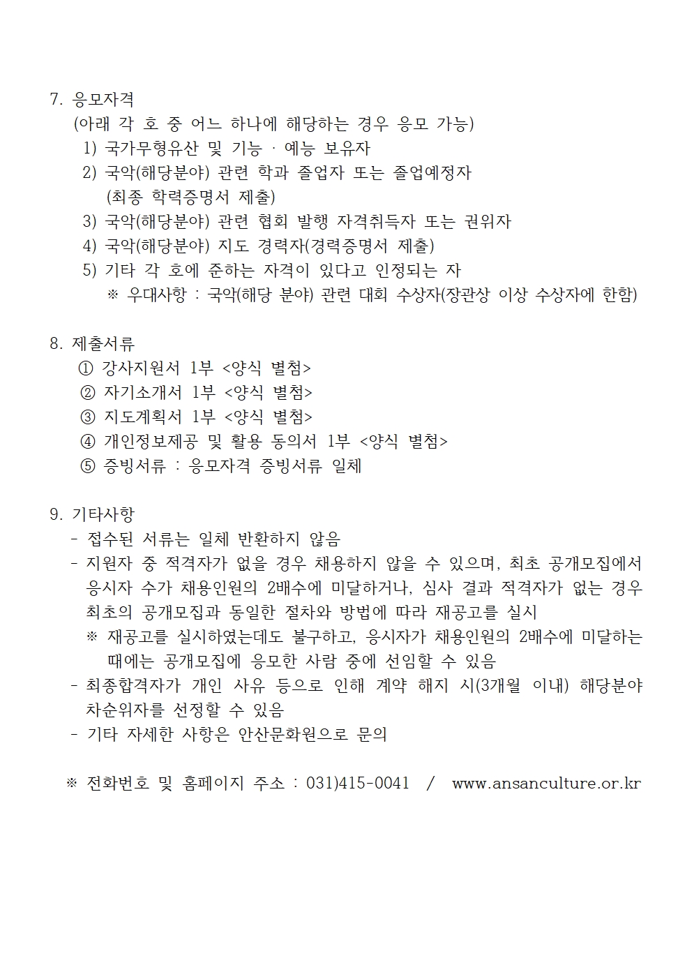 [안산문화원] 안산경기민요예술단 상임지휘자 모집 공고